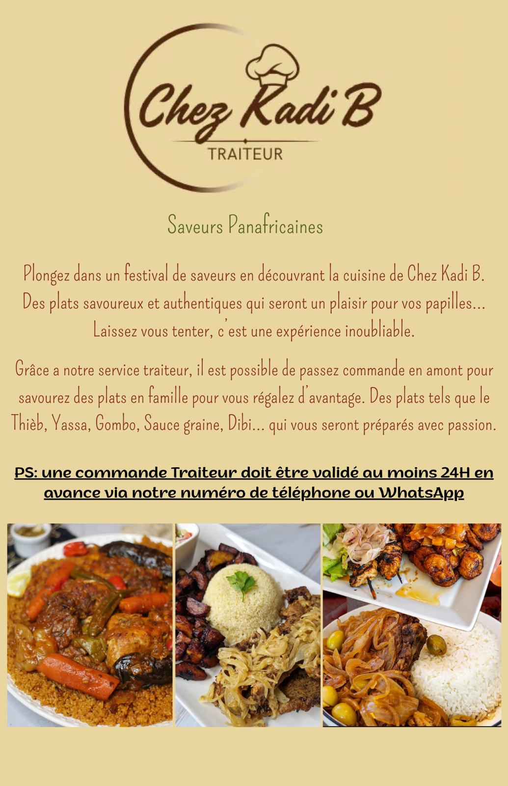 Plongez dans un festival de saveurs en découvrant la cuisine de Chez Kadi B. Des plats savoureux et authentiques qui seront un plaisir pour vos papilles... Laissez vous tenter, c'est une expérience inoubliable.
